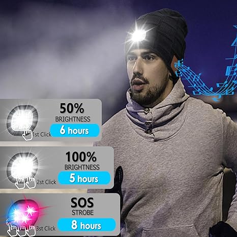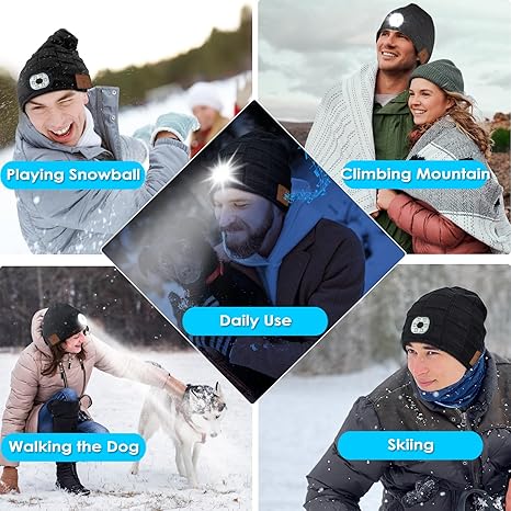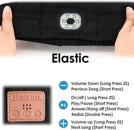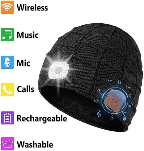 Keep warm and enjoy your favorite tunes with the Wireless Music Beanie Hat featuring built-in Bluetooth® speakers and a soft, cozy double-layer knit. Perfect for cold weather, outdoor activities, and hands-free listening — with LED lights for safety and style. Compatible with all Bluetooth-enabled devices and ideal for travel, workout, walking, or daily use.